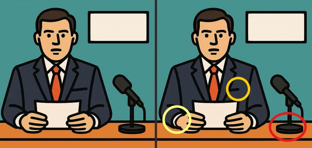 Készen állsz a következő kihívásra? Nézz meg alaposan két képet egy hírolvasó műsorvezetőről. Első pillantásra hasonlónak tűnnek, de három apró különbség van a képen elrejtve. Meg tudod találni mindegyiket 63 másodperc alatt? Próbáld ki ezt a rejtvényt, és teszteld, mennyire éles a látásod!